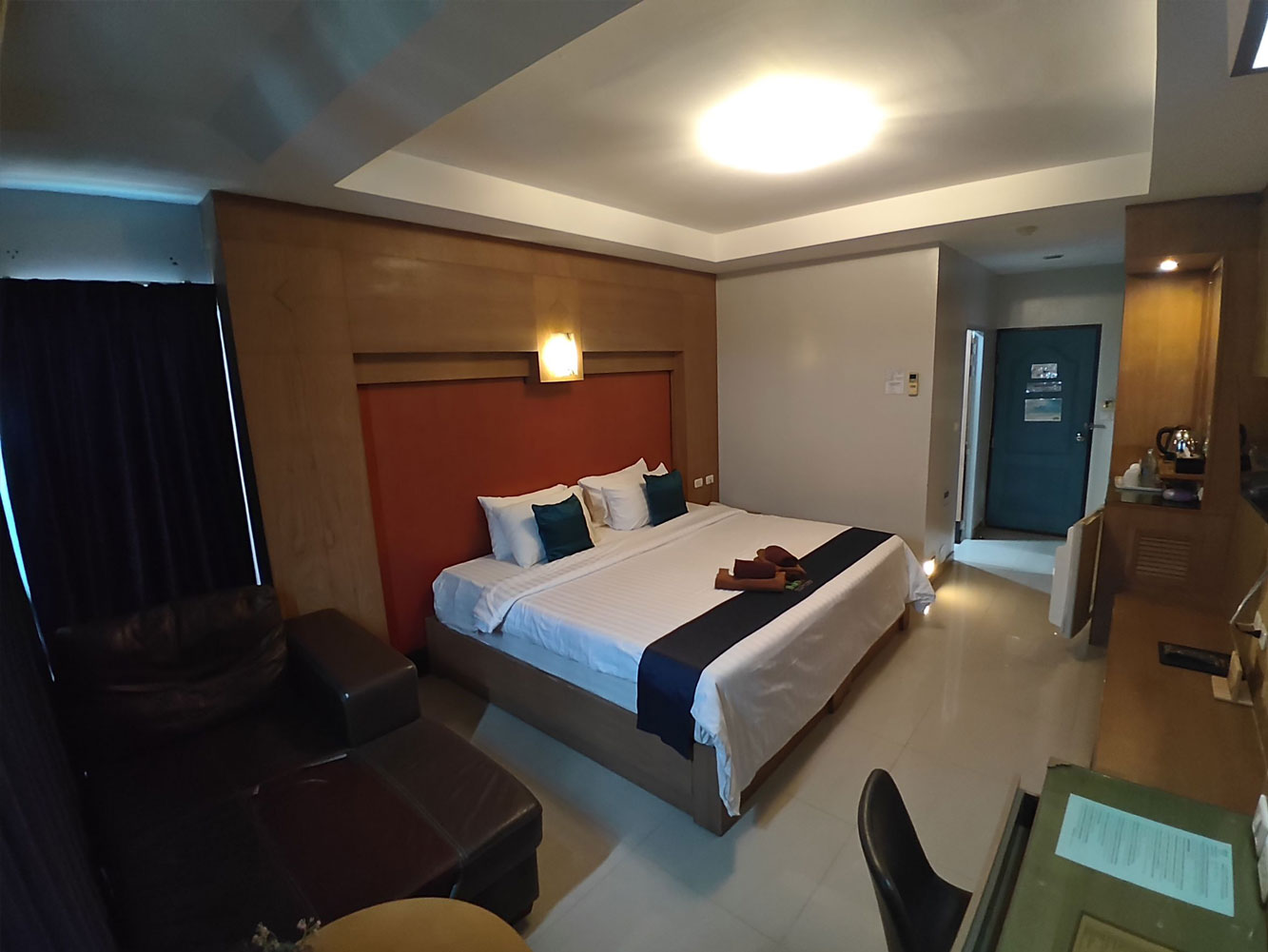 ขนาด 27 ตร.ม. เป็นห้องชั้น 5 เตียง 7 ฟุต ประกอบด้วย แอร์ เครื่องทำน้ำอุ่น ตู้เย็น ทีวี โซฟา โต๊ะกลาง กาน้ำร้อน ชุดกาแฟ ชุดยาสีฟัน ไดร์เป่าผม รองเท้า เสื้อคลุมอาบน้ำ และหมอนเพิ่มอีก 4 ใบ